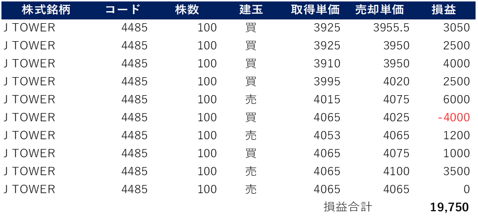 と言うことで、今日はひたすらJ TOWER(4485)をトレード。
