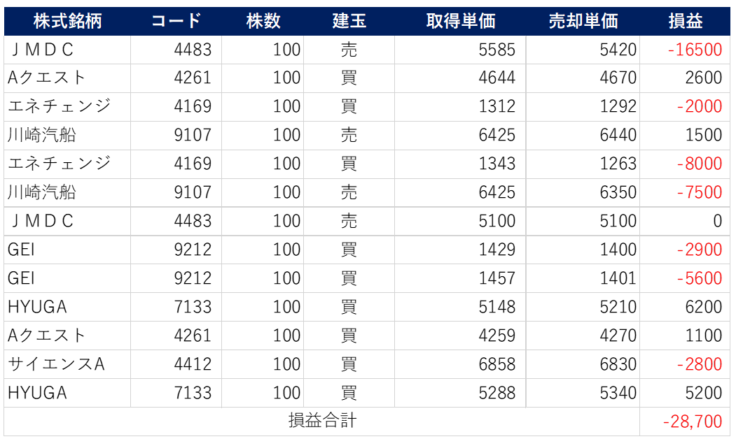 ただ、含み損を抱えたJMDCはまたまた持ち越し。(-33,000円)