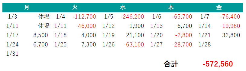 2022年1月日別収支