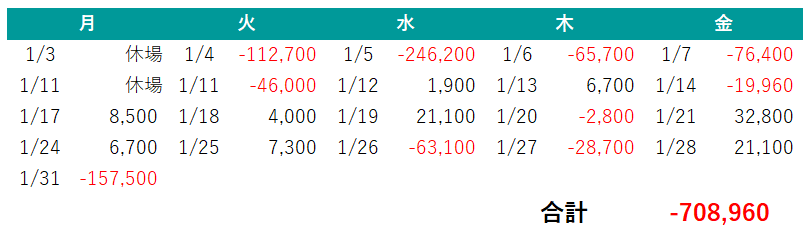 朝一のトレードで失敗し、いきなりマイナスを抱えた1月最終日。