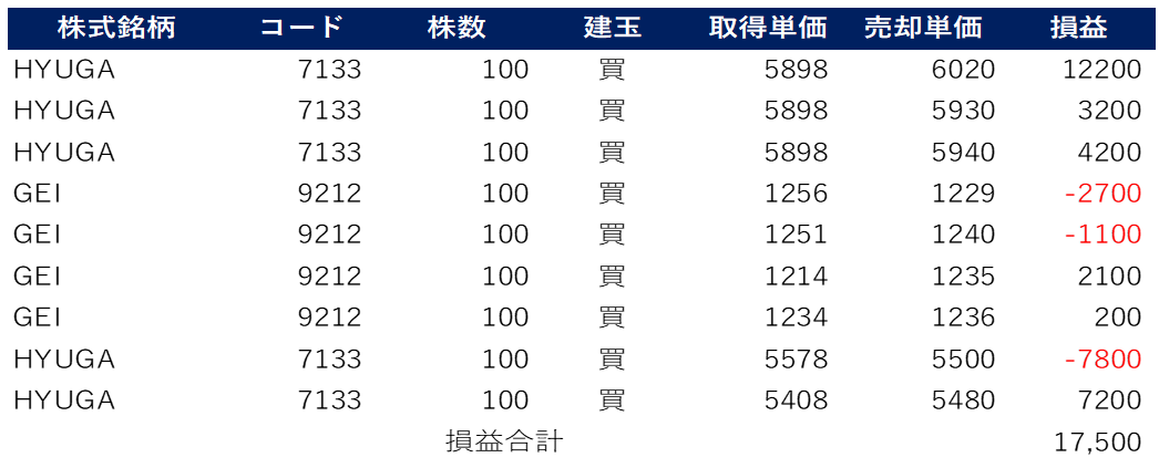 今日の確定損益:+17,500円