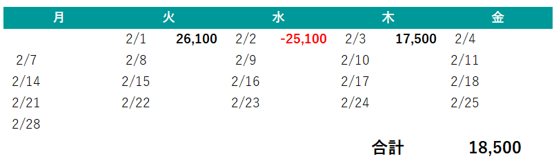 2022年2月日別収支