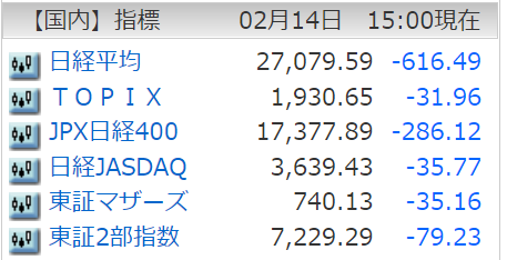 マザーズは先週2日間で上げた分をほぼ全戻し。