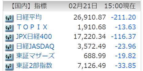 ”世界最弱”マザーズはこの日も全指数の中で下落率トップを独走。
