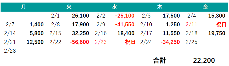 2022年2月日別収支