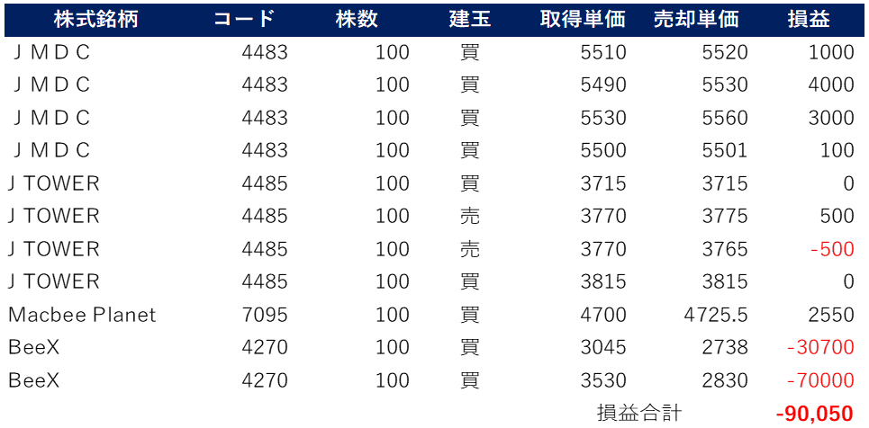 今日の確定損益:ー90,050円