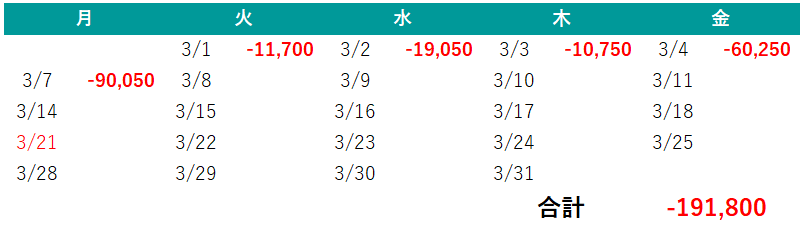 2022年3月日別収支
