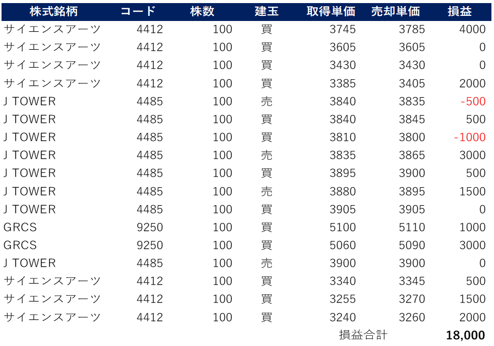 そして、今日触った3銘柄のうち2つ(GRCS/サイエンスA)が最終的にストップ安まで売られたことを考えても、この結果は十分すぎると言えるだろう。