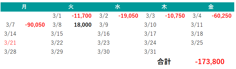 2022年3月日別収支