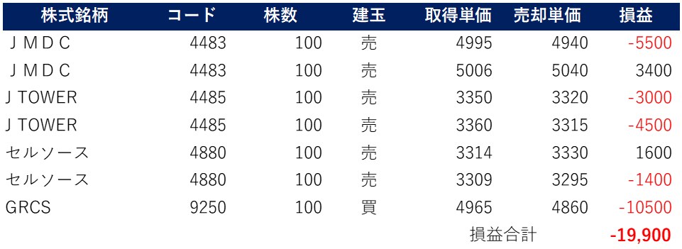その後もJMDCの空売りで焼かれ、セルソースでは2度のトレードでトントンに持っていくのがやっと。