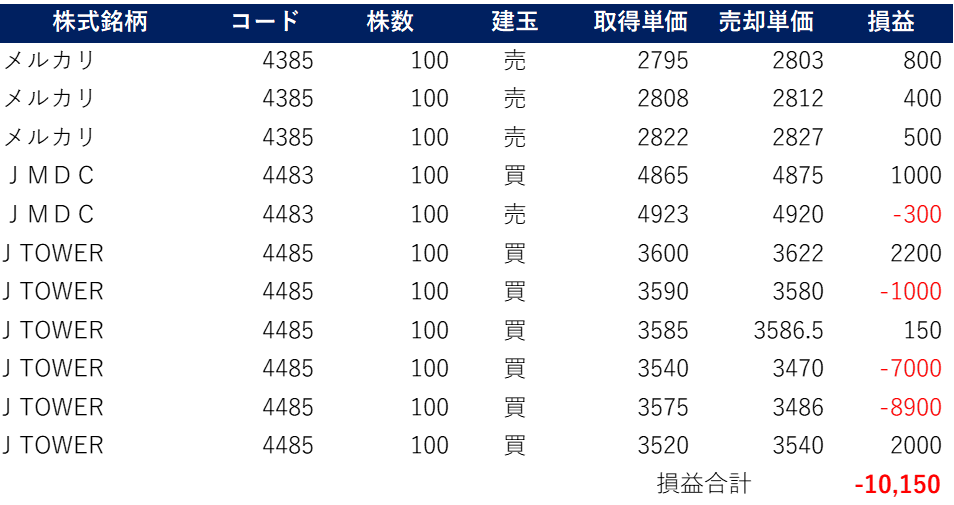 今日の確定損益:ー10,150円