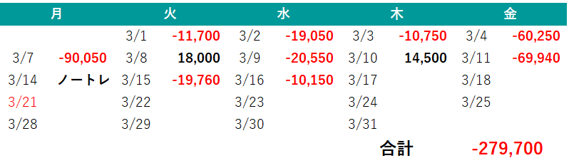 2022年3月日別収支