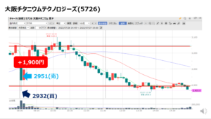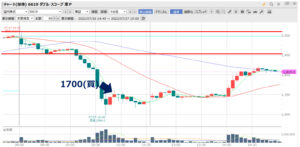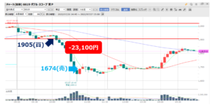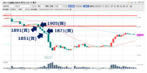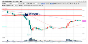 しかし、これは調整の範囲内だろうと判断した私は、得意の逆張り作戦発動とばかりに、まずは1,905円でイン。
