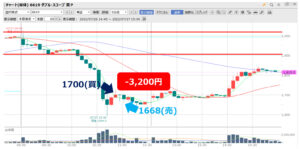 しかしその後さらに下へ掘ったため、2,932円でナンピンしています。