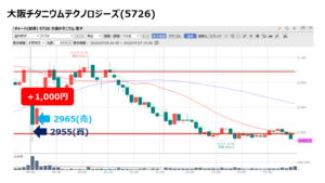 いいかんじに朝一にプラスを確保した私が、次にロックオンした銘柄はこちら。