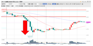 この銘柄は日々ボラティリティは激しいものの、朝一に大きく下がった日はかなりの確率で大きなリバを見せます。