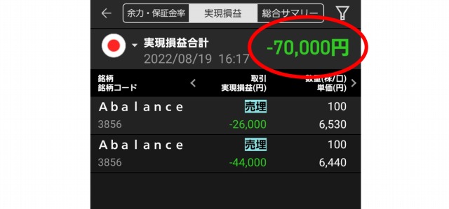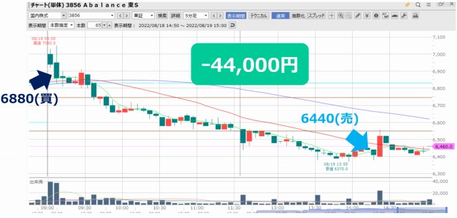 最終的に6,880円で買った1枚を6,440円で損切り。
