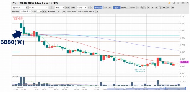 するとその直後にリバが発生し、瞬時に6,570円まで上昇。