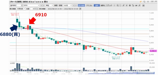 その証拠に、その後、予想通りのリバを見せて6,910円まで上昇。