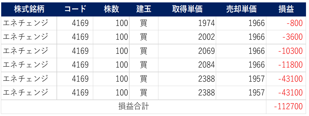 2022年の大発会は年末に追証を食らったエネチェンジの損切りでスタート。