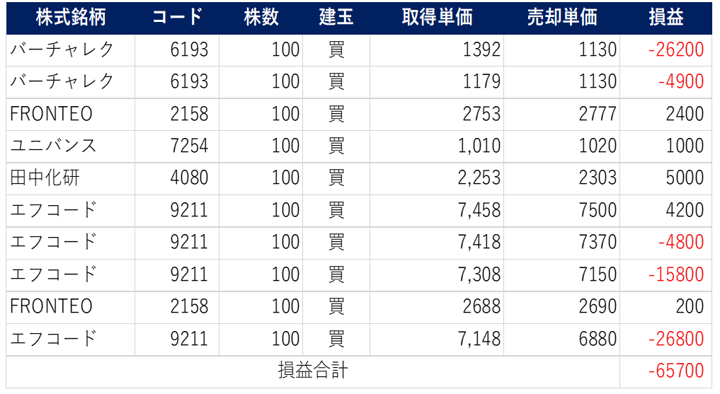ようやく含み損もなくなり新たなスタートを切るが、この日は朝一に取引したバーチャレクスで大幅マイナススタート。