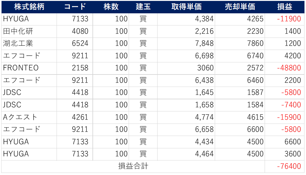 そしてそれを取戻そうと後場からIPO銘柄であるエフコードに手を出し、ガラに巻き込まれ撃沈。