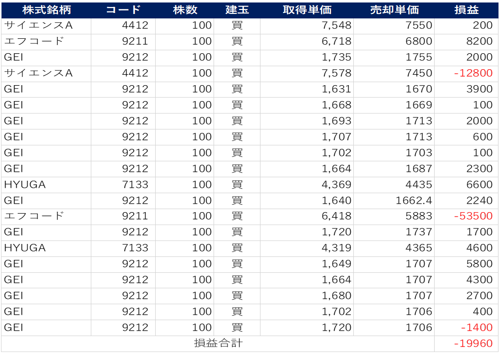 さらに、この日は最終トレードで人生初の空売りに挑戦。